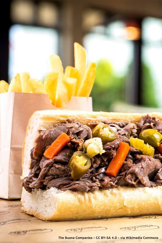 Un altro simbolo della cucina italo-americana di Chicago è l’Italian Beef Sandwich diventato ancora più iconico grazie alla serie “The Bear”. Dato che la carne bovina arrosto negli anni ‘20 e ‘30 era un bene costoso, veniva utilizzata con parsimonia e per riuscire a sfamare più persone durante feste, matrimoni e riunioni familiari, il manzo veniva tagliato in fette sottilissime e servito all’interno di un pane.