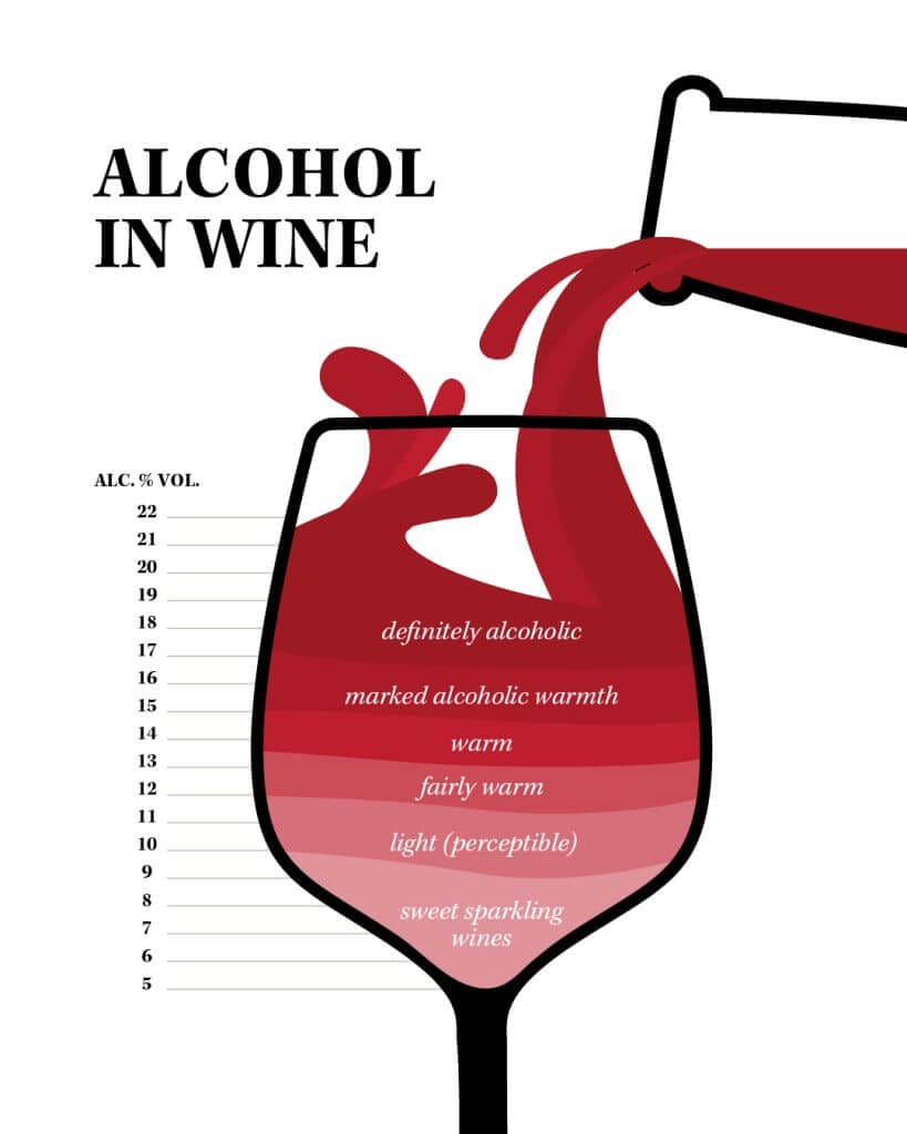 Approximately (since the perception of alcohol is also influenced by many factors, first and foremost the tasting temperature) the scale for evaluating the alcoholicity of wine is:
