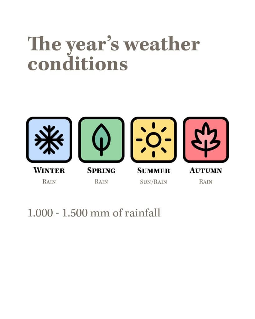 2024 was in fact a rather rainy year: from mid-February onwards, the rainfall arrived intense and plentiful, so much so that in the phenological phase of budding alone, rainfall was equal to the entire 2021/2022 vintage with over 450 mm of water. Rainfall was abundant in April and May, and certainly characterised the entire season up to the harvest. In the year 2023/2024, rainfall in the various areas was between 1,000 and 1,500 mm of water.