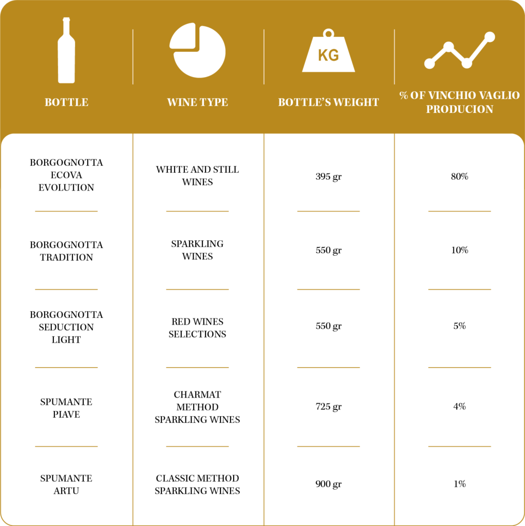 Indeed, it is believed that the environmental footprint of a glass bottle is practically equal to its weight: for every gram of glass produced, an almost equivalent weight of CO2 is dispersed into the environment (not counting transport emissions).