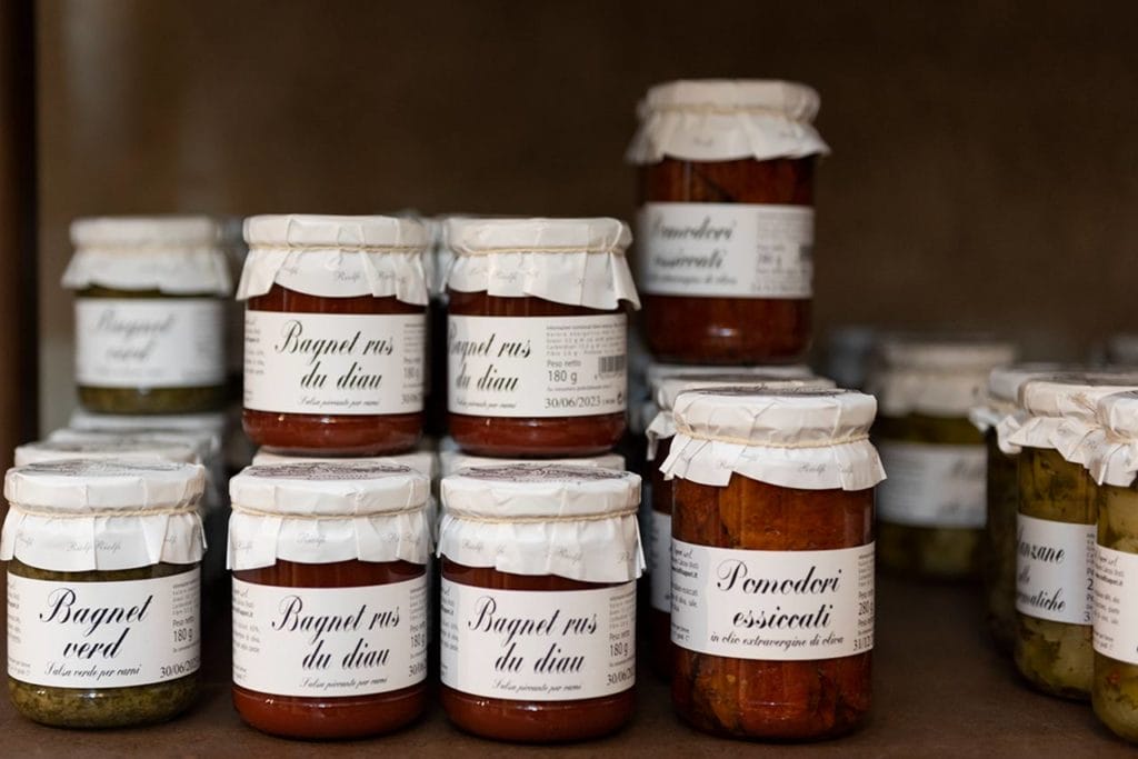 We never fail to replenish our shelves with typical Piedmontese preserves and sauces: jars of pickled vegetables starters, green and red (hot) sauce, aubergines and shallots in oil, but also, bagna cauda, grape jam and anchovies in green sauce – typically Piedmontese, linking Piedmont and the neighbouring region of Liguria. The Porcini mushrooms in oil that can be enjoyed from our store come from the Ligurian Appennines too!