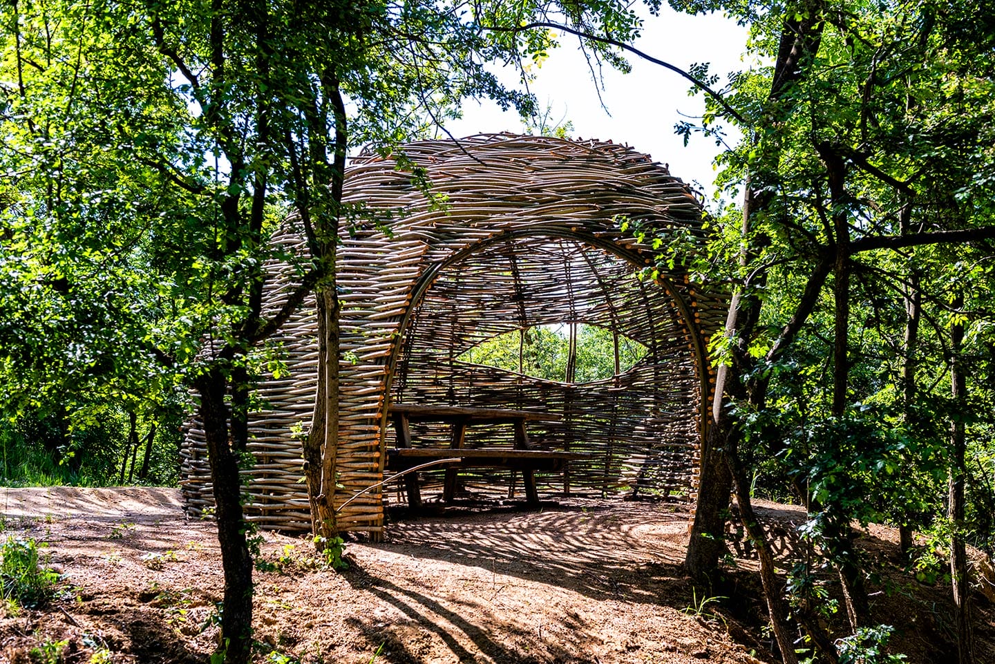 The Vinchio Vaglio company has purchased a portion of woodland between the winery and the Sarmassa Valley Nature Reserve. The old path has been restored and trestle tables and drinking fountains added. The peculiar “nests”, handmade willow structures, offer shelter from the hot sun and wind, and our guests sat around the picnic tables can enjoy fantastic views of the surrounding areas in a friendly atmosphere.