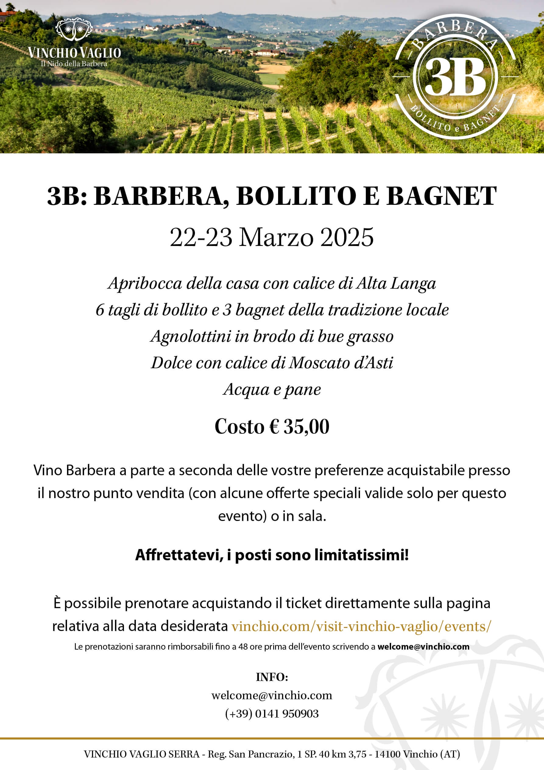![3B: Barbera, Bollito e Bagnet [23/03/25 – pranzo] SOLD OUT! - immagine 3](https://cdn.vinchio.com/wp-content/uploads/2024/02/8c0ec47d-4c0b-447e-bb95-a7d349c5ad0e.jpg?strip=all&sharp=1)