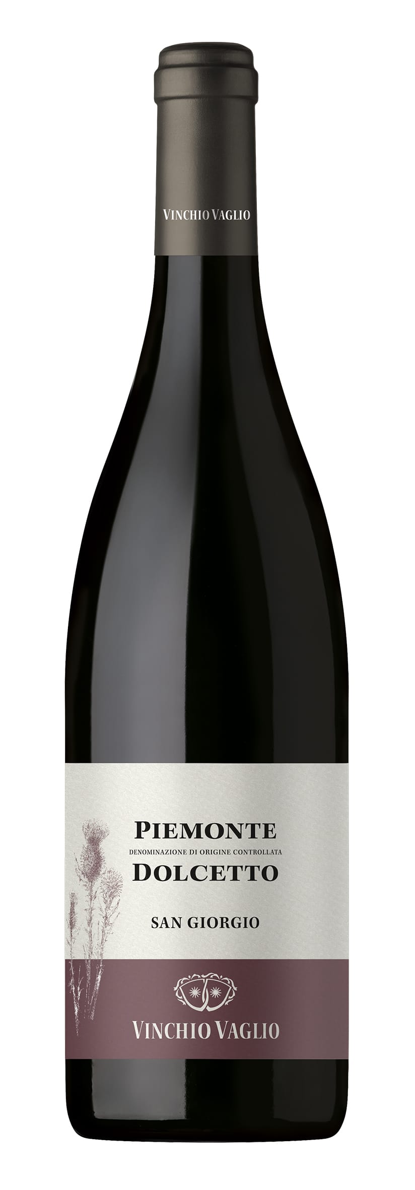 Descrizione: Vino secco per eccellenza, il Dolcetto ha una denominazione curiosamente in contrasto con questa sua caratteristica. Il fatto si può verosimilmente spiegare solo se si fa riferimento non tanto al vino quanto all’uva da cui deriva, di limitato tenore acido e gradevolmente dolce. Il Dolcetto non è vino adatto a lungo invecchiamento a causa della sua bassa acidità, ma propone tannini piacevoli che lo rendono perfetto e versatile per abbinamenti gastronomici a tutto pasto. Numerose sono le Denominazioni d’origine che in Piemonte fanno riferimento al Dolcetto il che dà luogo a vini con caratteristiche molto diverse tra loro pur essendo prodotti con lo stesso vitigno. Nel nostro caso abbiamo un Dolcetto con una rilevante caratteristica fruttata che riduce la carica di tannino mettendo in evidenza peculiarità uniche di questo vino. Il nome San Giorgio fa riferimento ad un insediamento monastico benedettino, di cui oggi non c’è però più traccia, eretto in frazione Noche di Vinchio, in posizione elevata e ben esposta, particolarmente adatta alla coltivazione della vite.