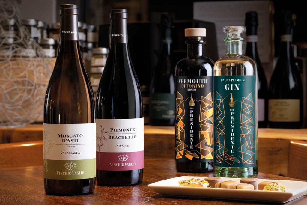 Non c’è Piemonte del vino senza i suoi più celebri aromatici: Moscato e Brachetto, ai quali si aggiungono ottime basI per cocktail e aperitivi oppure digestivi con la “Linea del Presidente” composta da grappe, gin e vermouth.