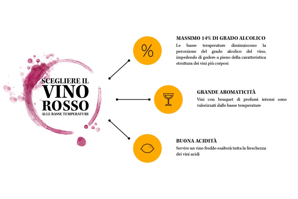 Una precisazione è obbligatoria: non tutti i vini rossi si esprimono al meglio alle basse temperature. Per capire quali scegliere prendi come riferimento queste semplici linee guida e punta su vini che hanno: