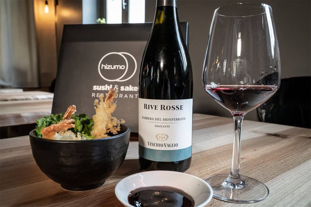Piemonte DOC Barbera Le Tane , dal gusto morbido, fine e fresco, con la sua eleganza disinvolta, gioca in punta di piedi con la soia, si sposa con il tonno e accompagna anche le sfumature iodate del nigiri. Provare per credere… soprattutto se passate al ristorante Hizumo Sushi e Sake di Fossano.