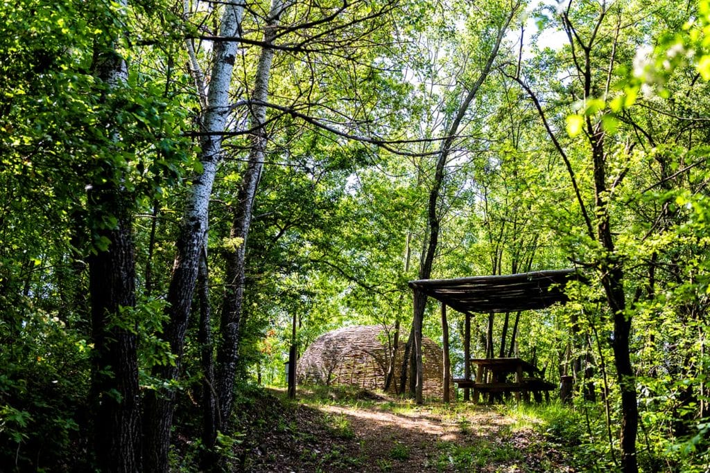 Vinchio Vaglio ha infatti acquistato una porzione di bosco attiguo alla cantina e confinante con la Riserva Naturale della Val Sarmassa; ha ripristinato l’antico sentiero inserendo tavoli, fontane e gli originalissimi “nidi”, strutture in salice intrecciato a mano, che proteggono i tavoli da picnic dal troppo sole e dal vento mantenendo, però, le giuste aperture che consentono di godere dello splendido paesaggio circostante in un’atmosfera familiare e raccolta.